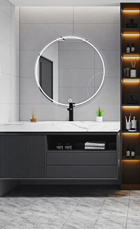 將現代工藝與自然的真實質感糅合,「哥倫比亞白」純淨素雅的磚麵靈動自然,在柔和光線下帶來波光粼粼的美感,結合玫瑰金打造的典雅洗浴櫃,煥發出非凡的氣質與底蘊。