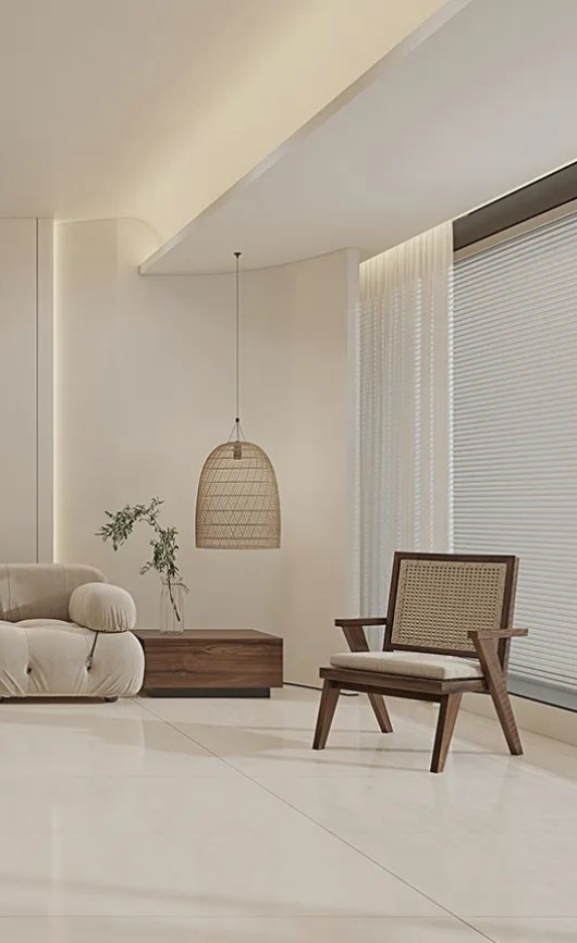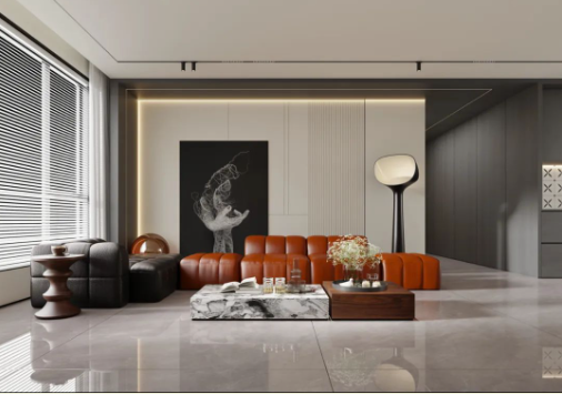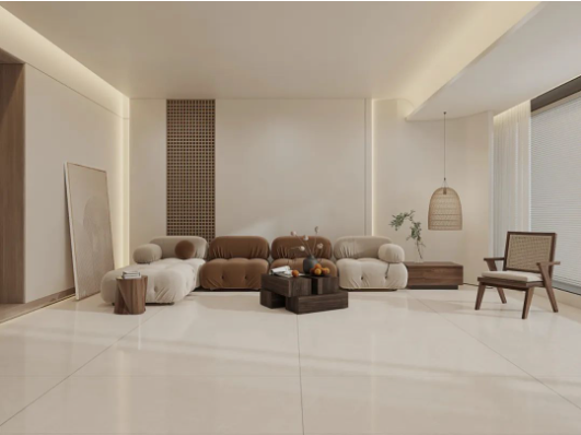 自然流動的石紋肌理錯落磚麵,恰到好處的溫醇質感與大地色係的軟裝沙發、凳子遙相呼應,溫馨風格的活力,讓人一掃鬱結煩悶,重獲呼吸自由。