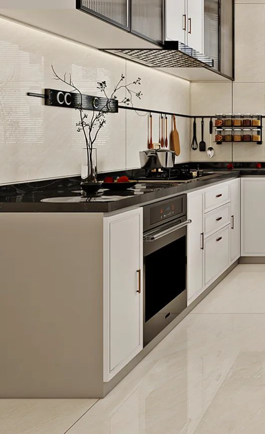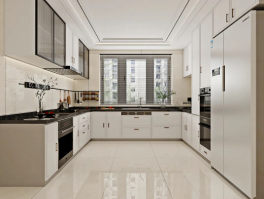 廚房以瑞金米黃進行通鋪,如同秋日暖陽,悄然無聲潛入室內,雖不是特別熾熱,但卻溫暖有力量。
