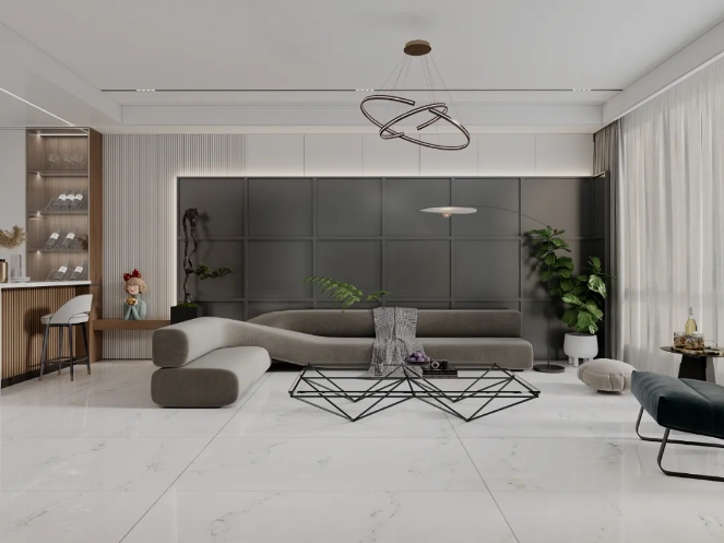 大片落地窗引景入室,溫暖柔和的【蒂莫西】鋪設地麵,與極具藝術感的軟裝搭配,瞬間點亮了整個空間,營造出更靜謐且充滿藝術氣息的家居氛圍感。
